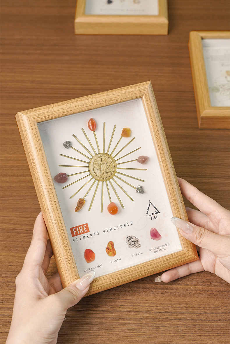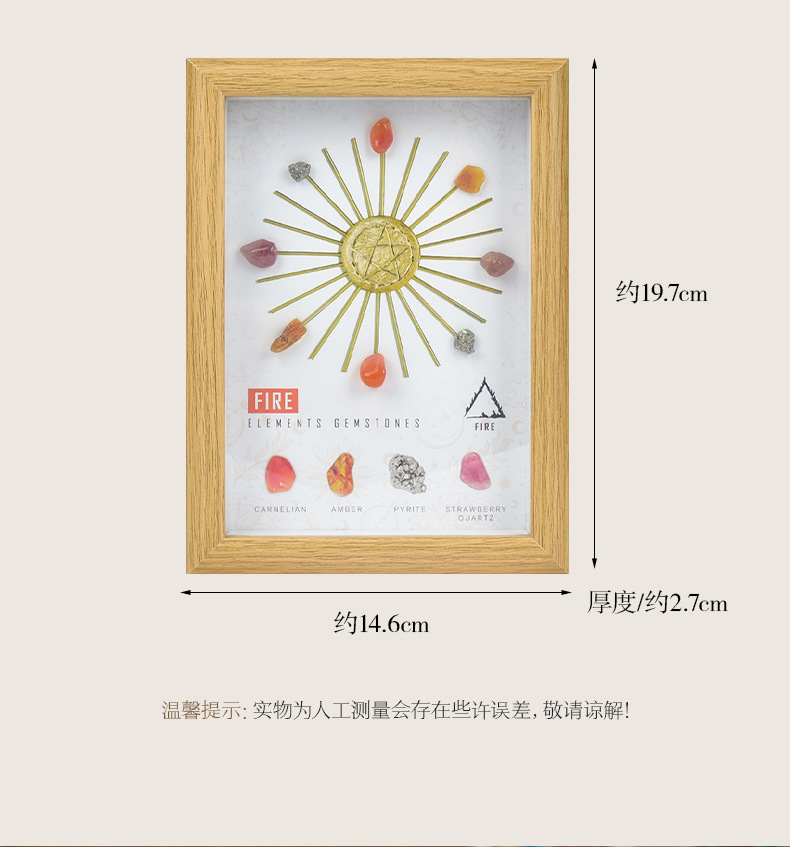 Display your cherished memories within a harmonious blend of natural elements. This Five Elements Crystal Photo Frame merges traditional mineral aesthetics with modern functionality, featuring authentic crystals and decorative mineral painting that embodies the balance of earth, water, fire, wood, and metal. Each frame serves as both a protective vessel for your photographs and a statement piece that brings grounding energy to any space. The carefully selected minerals create visual depth while the crystal elements enhance the frame's natural luminosity. Perfect for those who appreciate the intersection of personal sentiment and mineral wellness philosophy.