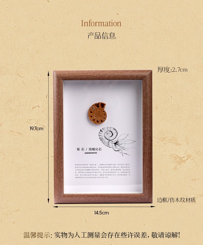 Display your most valued moments alongside a genuine relic from Earth's ancient oceans. This refined picture frame features an authentic spiny dogfish tooth fossil—a prized specimen from a formidable deep-sea predator that has remained virtually unchanged for millions of years. The fossil's sharp geometry and natural mineralization are expertly integrated into an elegant frame, creating a sophisticated conversation piece that captivates both paleontology scholars and design enthusiasts. Perfect for collectors seeking rare marine artifacts, researchers, and those who appreciate the profound connection between natural history and contemporary aesthetics. Each tooth's distinctive characteristics ensure your frame is entirely unique—a remarkable accent that celebrates the resilience and evolutionary success of ancient marine life.